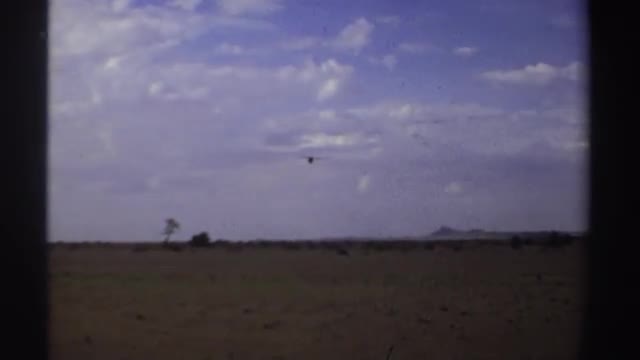 1969: a small landing aircraft is flying low over a field SUDAN