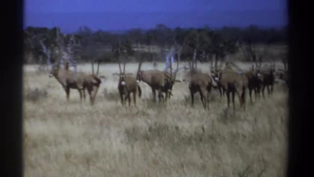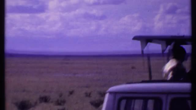> 1969: old footage of several giraffes running through the savannah KENYA