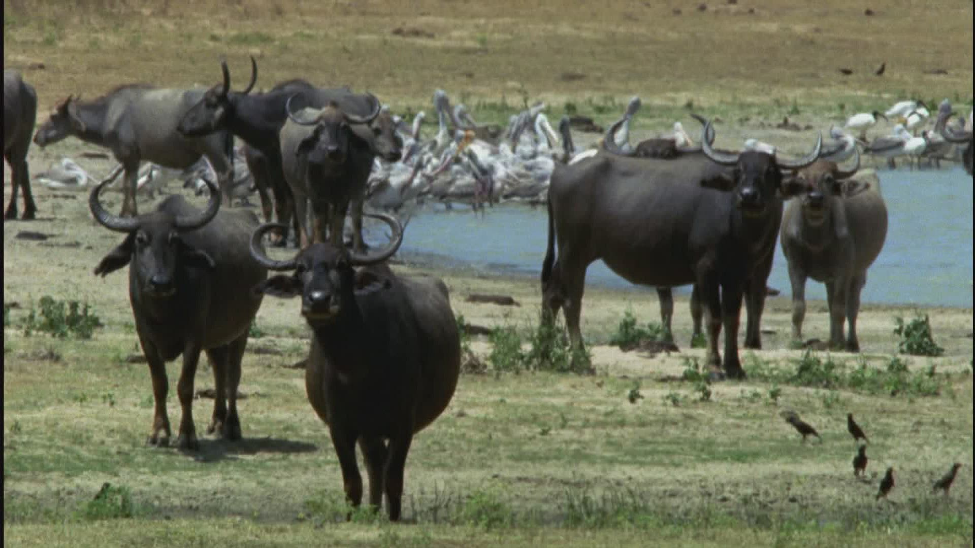 > 1969: male water buffalo walking casually in a field KENYA