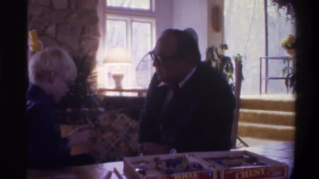 > 1975: grandfather and grandson playing a board game. FLORIDA