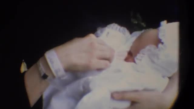 > 1974: mom holding a cute baby wrapped in white cloth FLORIDA