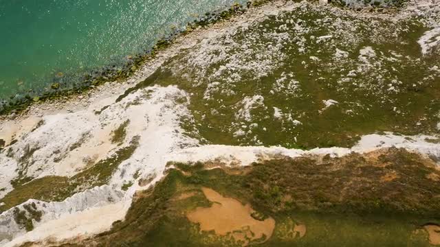 457040 - Birds-eye view aerial drone footage of Seven Sisters cliff edge