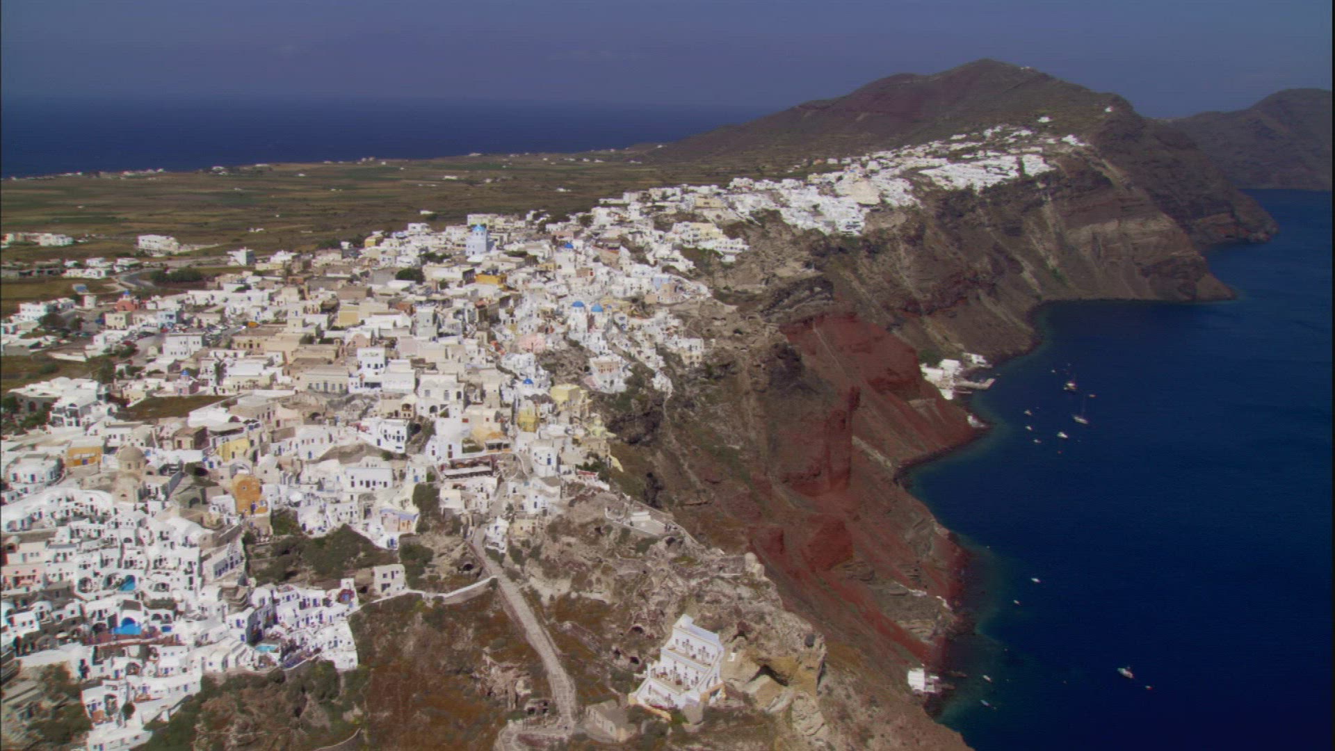 On the coast of city Perea, Greece on evening streets walking people. Then seen how young girl sits on the window-sill and working on tablet