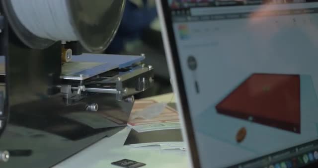> Working 3D printer and laptop with model on screen
