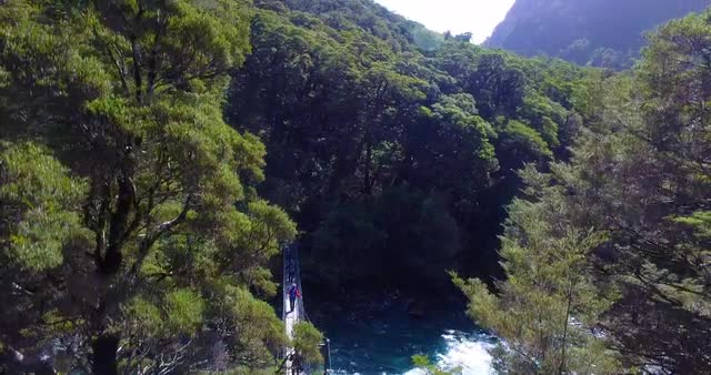 Cinemagraph - Man walking across the bridge in Trang An, Scenic Landscape Complex in Vietnam. Green mountains and cloudy sky in background