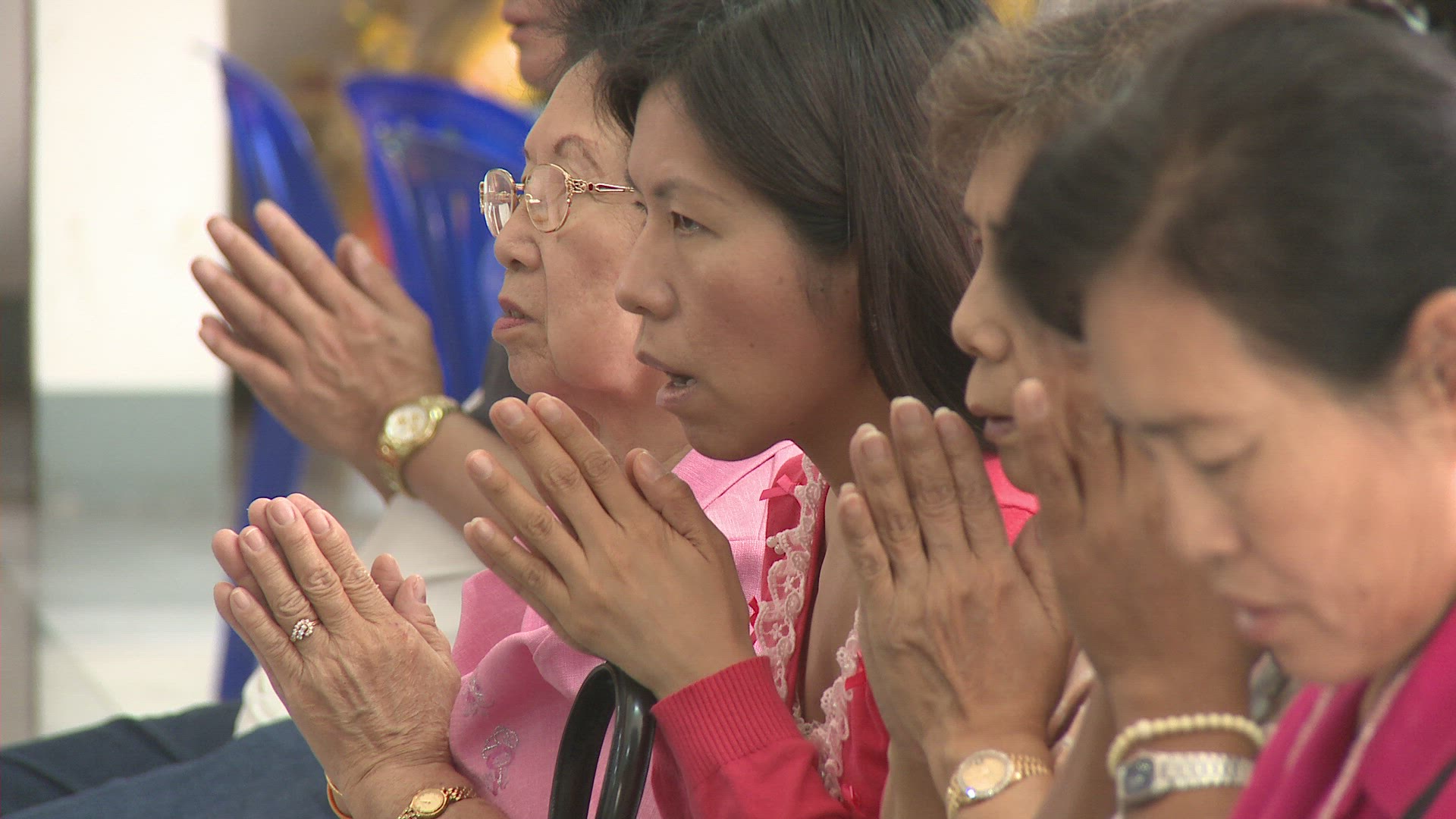 > Woman taking photos of statues in Bai Dinh Pagoda, Vietnam