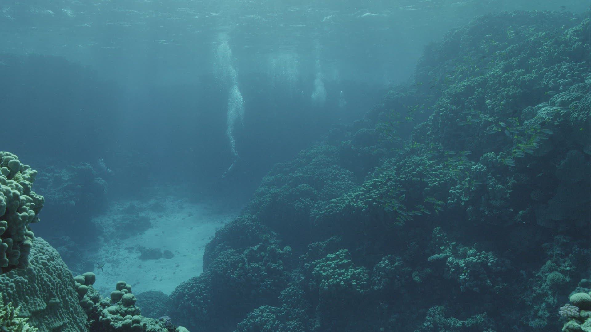 View of big tropical fishes random swimming in aquarium with corals. Close up view. Siam Ocean World, Bangkok, Thailand