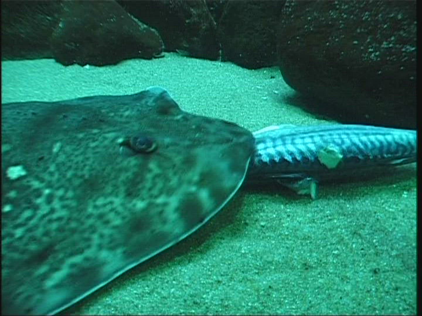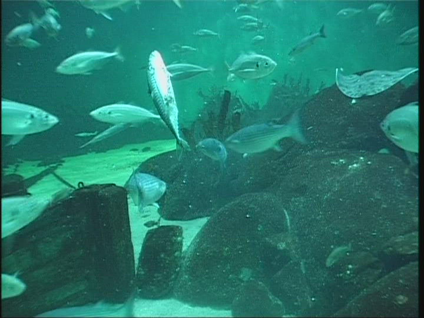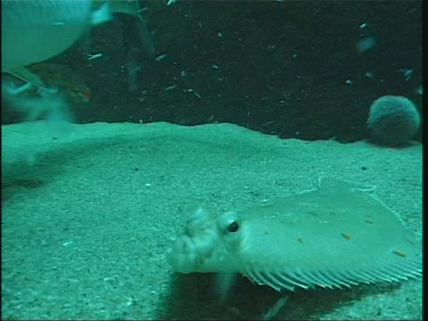 Woman attending oceanarium. She making photos of fish in aquarium using digital tablet