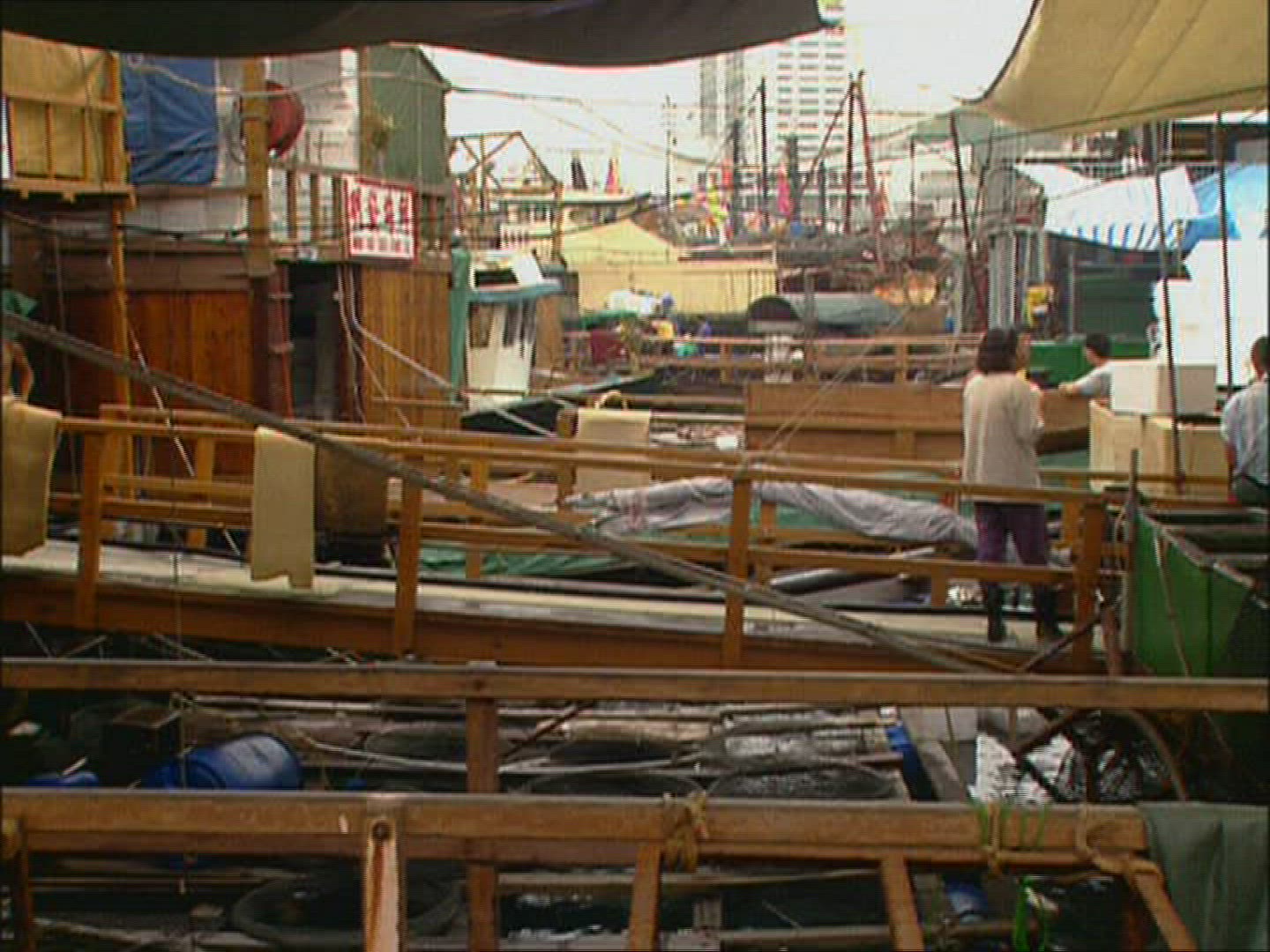 Goldfish for sale in the street market of Hong Kong. Fish kept in plastic bags hanging on the racks