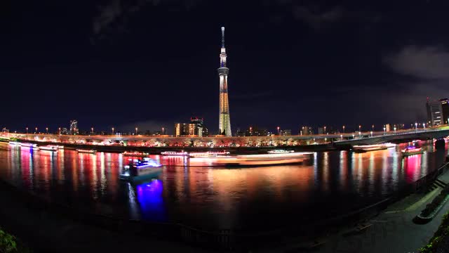 > Time-lapse footage of Tokyo cityscape with Skytree tower, Tokyo, Japan