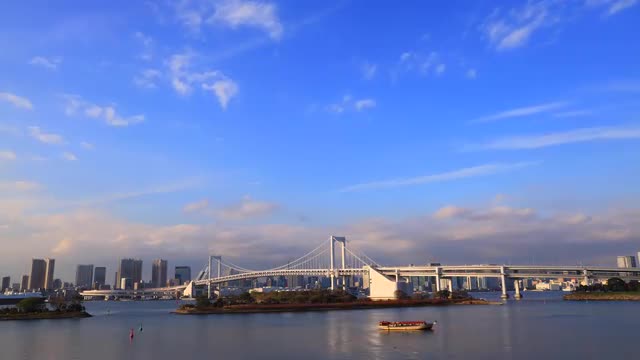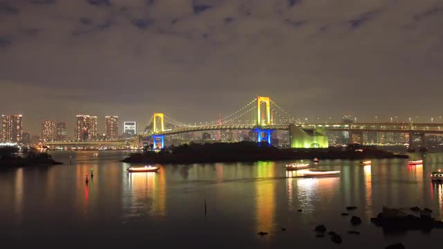 > Time-lapse footage of Tokyo cityscape at night from Odaiba, Tokyo, Japan