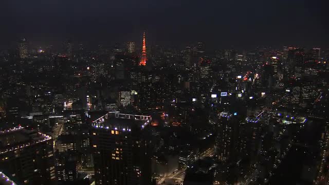> Time-lapse footage of Tokyo cityscape at night from Odaiba, Tokyo, Japan