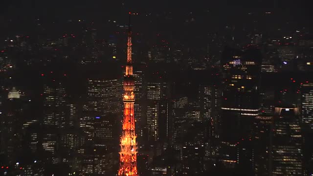> Time-lapse footage of Rainbow bridge at night, Tokyo, Japan