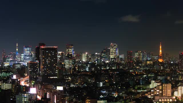 > Time-lapse footage of Tokyo cityscape at night, Tokyo, Japan