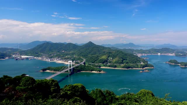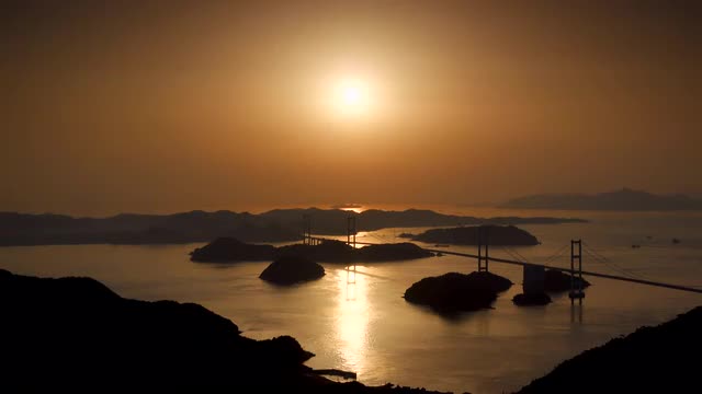 > Suspension bridge at sunset, Ehime Prefecture, Japan