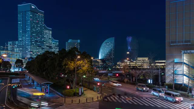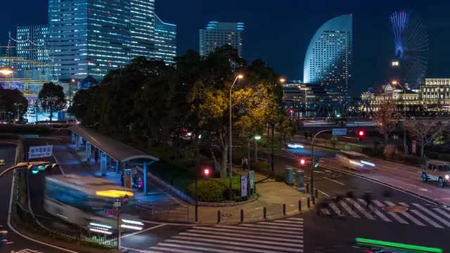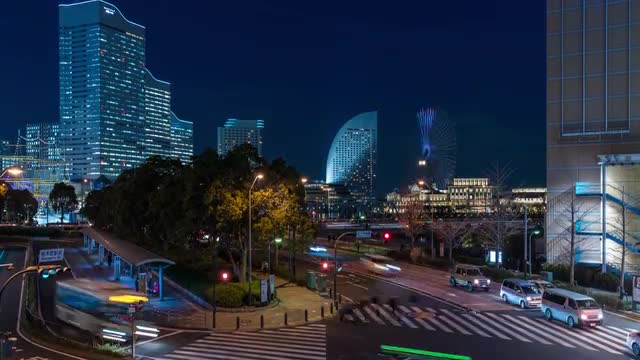 > Above view of Yokohama cityscape at night, Kanagawa Prefecture, Japan