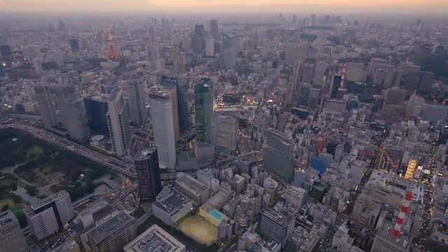 > Aerial footage of Tokyo cityscape