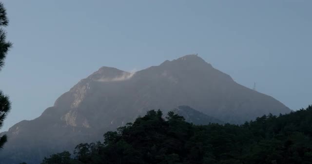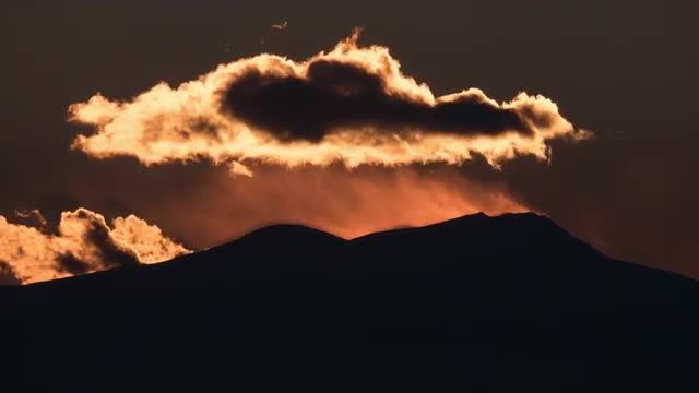 Timelapse shot of time changing and clouds sailing on evening sky over Mount Olympus. The highest mountain in Greece and the second one in the Balkans