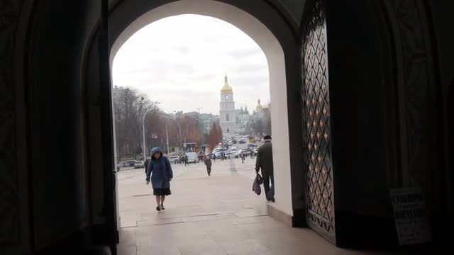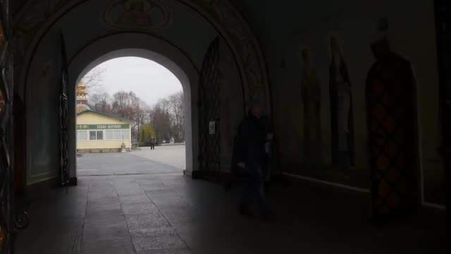 On a semicircular concrete arch hangs a bell and swinging in the wind