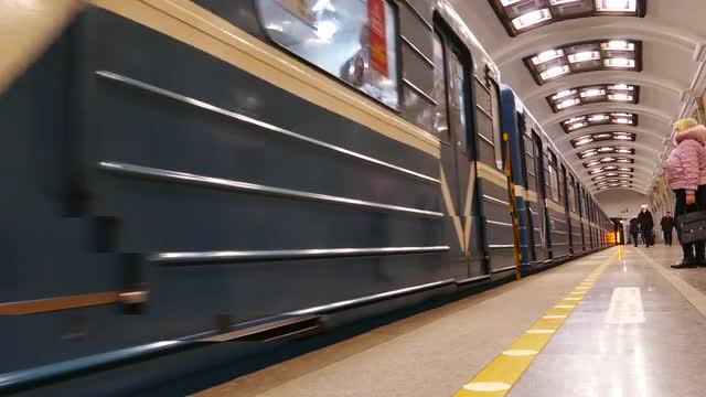 > In Saint-Petersburg, Russia in train rides young girl and looking out the window