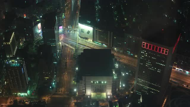 SEOUL, SOUTH KOREA - OCTOBER 22, 2015: Timelapse of people crossing the road on zebra in big illuminated city at night. Busy streets of metropolis