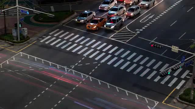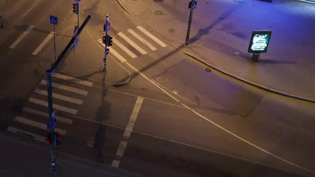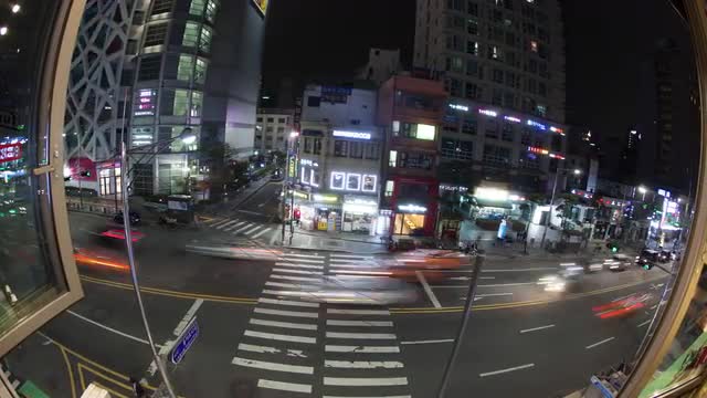 > Timelapse of people on zebra crossing at night. Seoul, South Korea