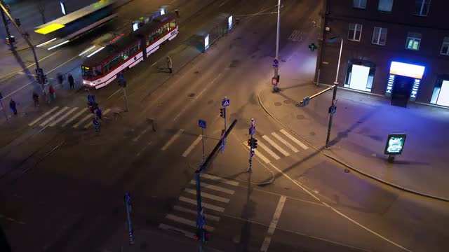 Timelapse of people on zebra crossing at night. Seoul, South Korea