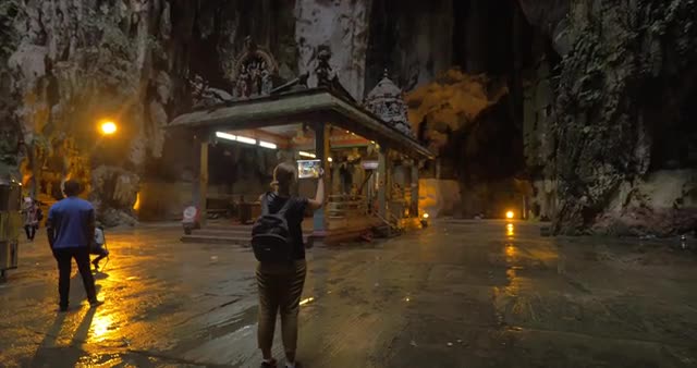 > In Batu Caves on stone sits a monkey and drinking from a plastic bottle