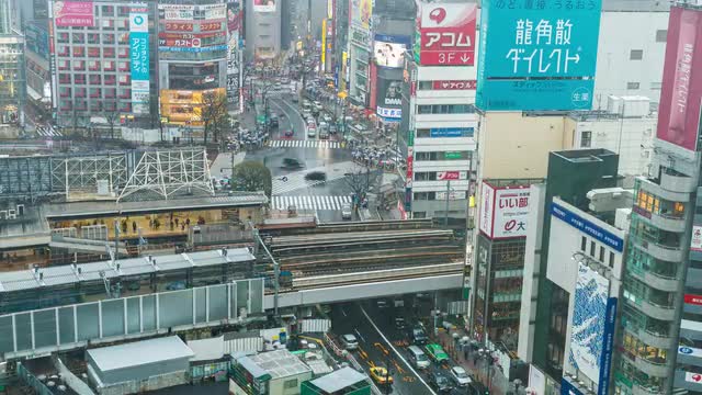 Timelapse panning shot of night changing evening in Bangkok, Thailand. Panoramic city view with transport traffic