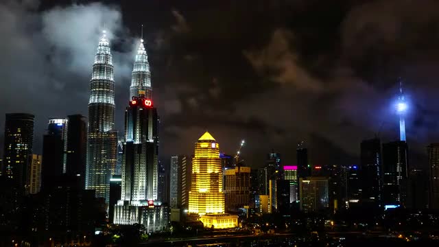 Timelapse of night Kuala Lumpur with illuminated skyscrapers