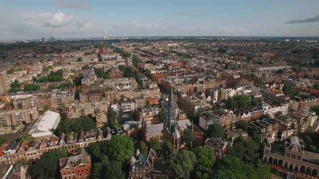 Aerial view of Moscow cityscape with apartment blocks and car traffic on Leninsky Avenue, Russia