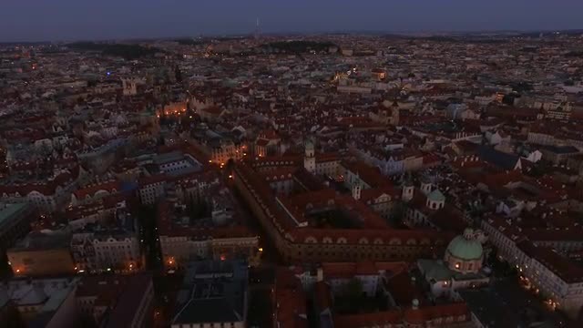 Aerial view of Prague in the evening, Czech Republic. Waterside view and cityscape with Old Town