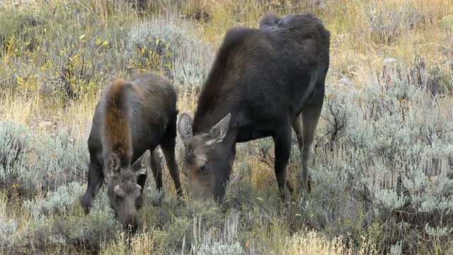Bull moose looking for food during a winter morning in Grand Teton National Park.
