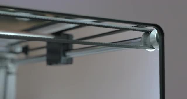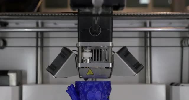 > Extreme close-up view of mechanism of 3d printer making white plastic object