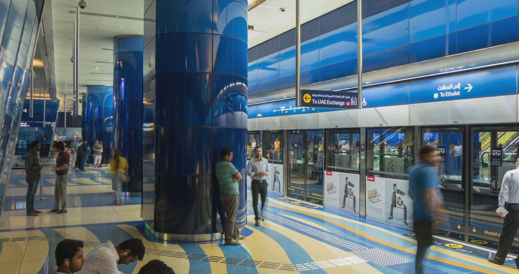 Shot of young blond woman going along train and searching her seat place, modern rail train, Vienna,
