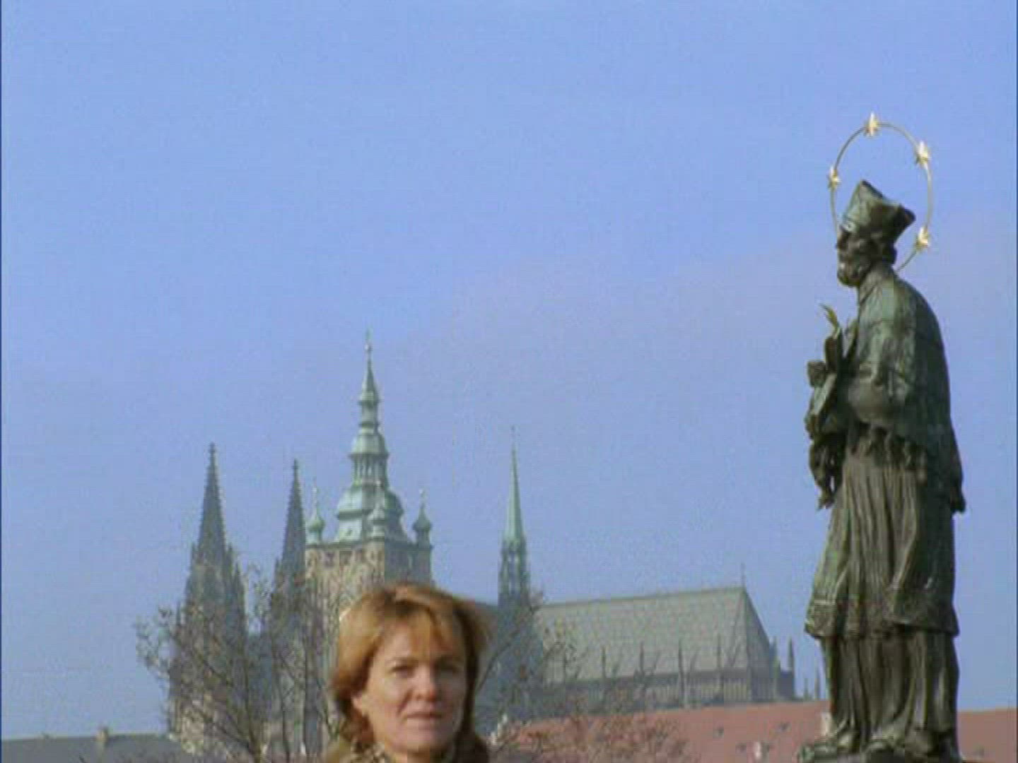 > Woman tourist taking mobile photo of St. Vitus Cathedral, Prague
