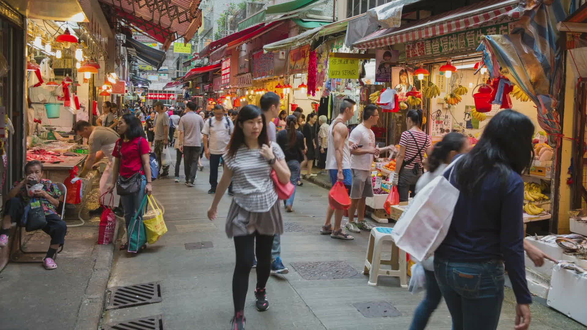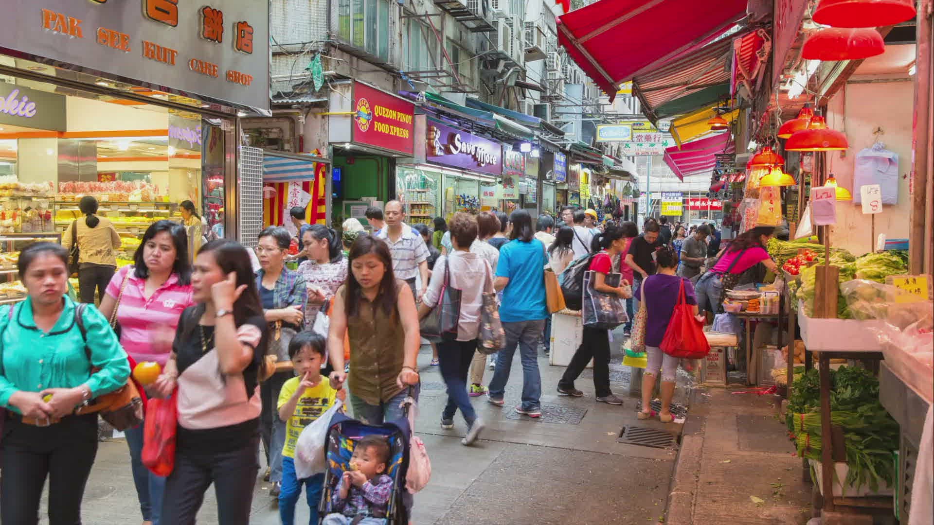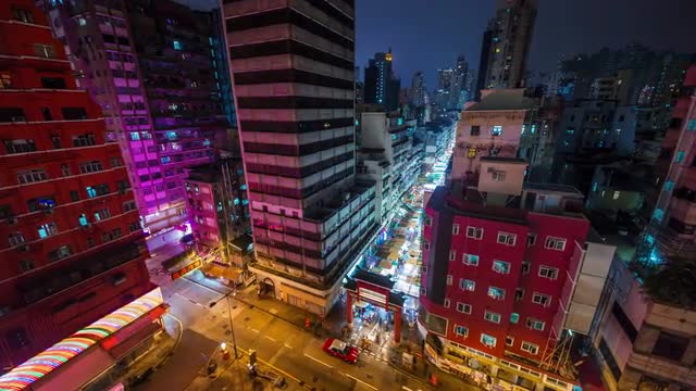 HONG KONG - NOVEMBER 09, 2015: Timelapse shot of people choosing and buying fish at street market of night city