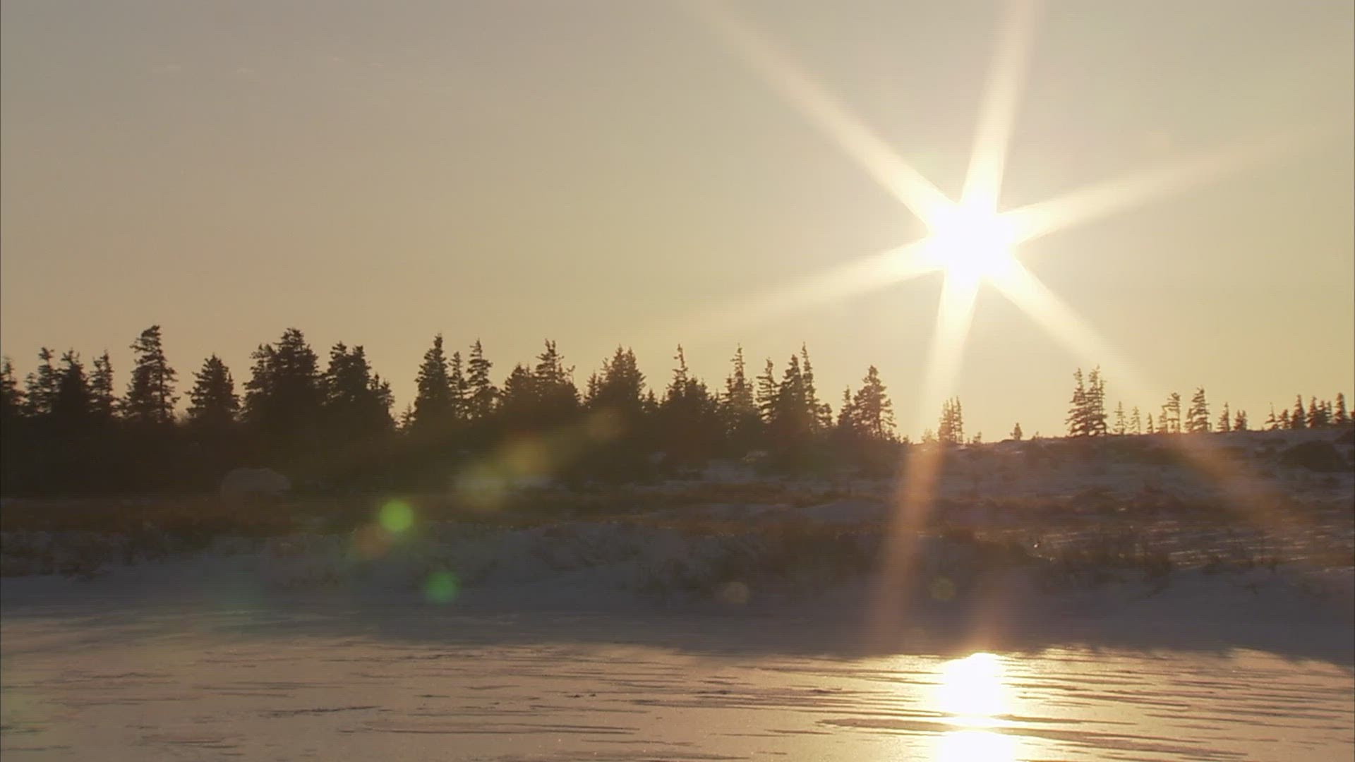 Hemlock and spruce trees covered in fresh snow with Alaskan mountains in the background.