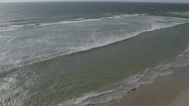 2119339 - Wavy sea and a log covered with water weed on the shore