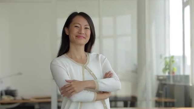 MS SELECTIVE FOCUS Businessman stands with folded arms smiling / Singapore