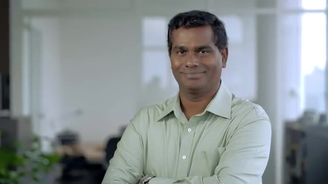 > MS SELECTIVE FOCUS Businessman stands with folded arms smiling / Singapore