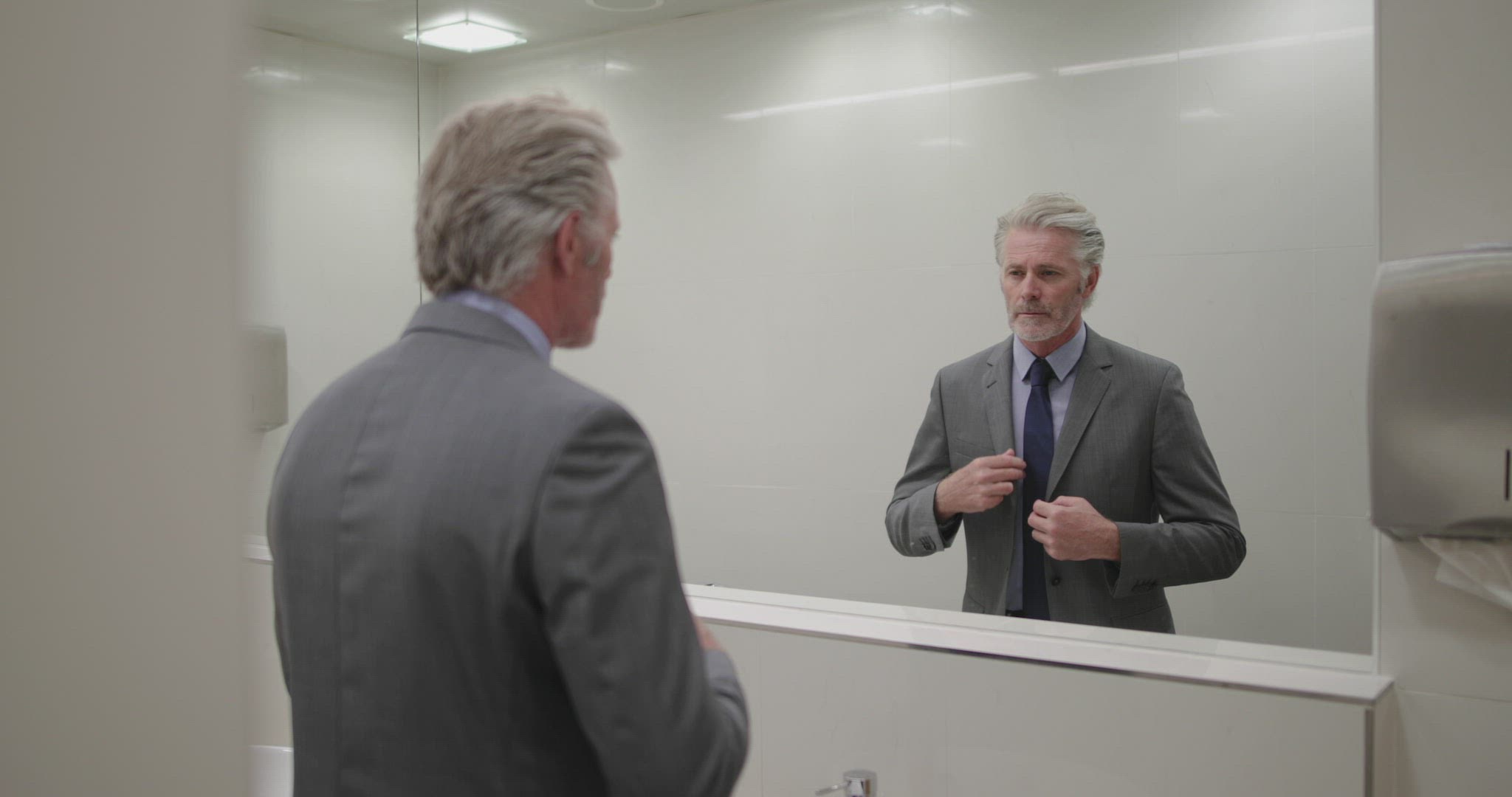> MS Businessman shaking hands in lobby / Singapore