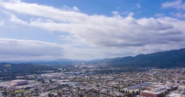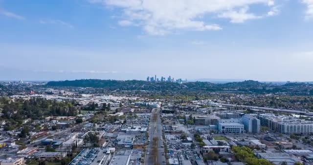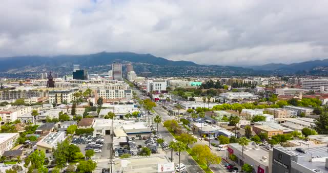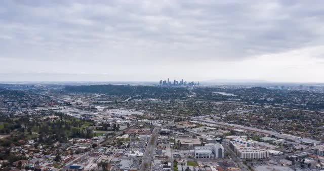 Panning time-lapse of Los Angeles City, where a complete sun lit city scape is seen
