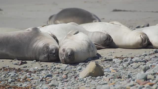 Scene from a colony of elephant seals spending time at Piedras Blancas in the southern range of Big Sur, near San Simeon.