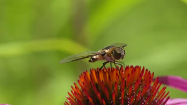 677625 - Hoverfly cleaning mouthparts on cone flower, high speed