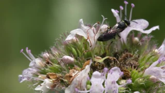 Hylaeus walking around on mint flower HS