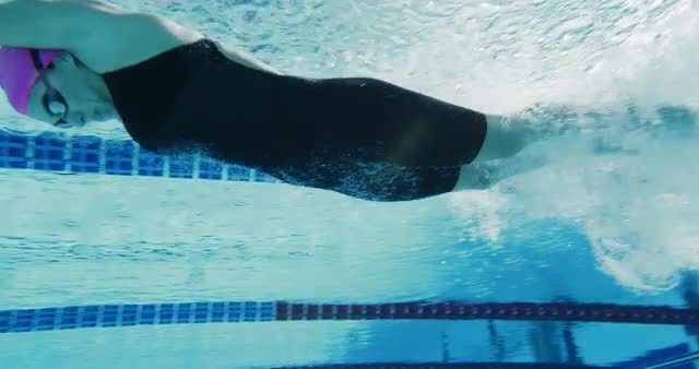 Professional Sports Woman Jumps In Swimming Pool Swimming Crawl