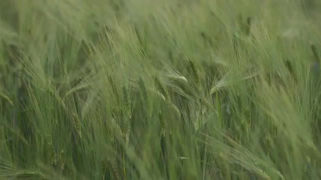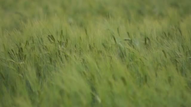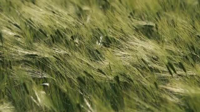 Closeup of green plant in meadow, left pan