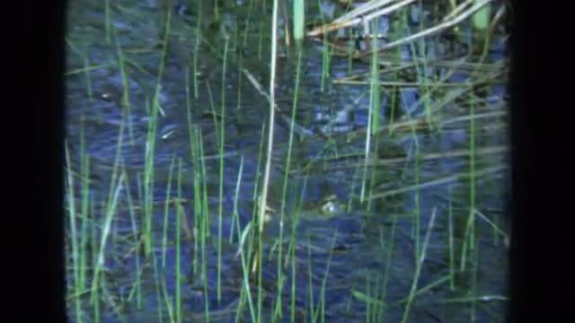 679199 - 1971: a green frog on some vegetation in a pond MAINE