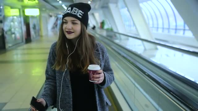 537562 - Gorgeous female model drinks a coffee outside a shop